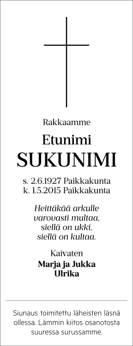 Esimerkki-ilmoituksen koko 99 x 123 mm